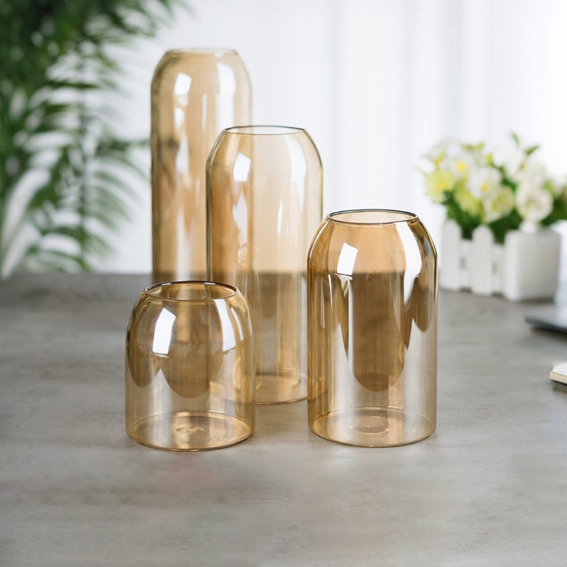 Hydroponic vase Scandinavian style amber glass vase simple storage jar flower arrangement water living room ornaments glass vase